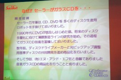 またN&Fの西脇義訓氏は「当初はガラスで本当に音が変わるのか?と言われたものだが、実際に聴いていただくと変わることを実感していただけた。現在は廉価版CDも多くなっており、言ってしまえば『粗製濫造』されているが、私はCDはもっとポテンシャルの高いものだと考えている。ガラスCDの保存性の高さと音の良さを活かしディスクの価値を高めたいという思いがあった。現在注目されているHQCDやBlu-spec CDといった高音質CDの登場も、ガラスCDが“ディスクの質”というものに注目するきっかけになったのかも知れない」と語った。