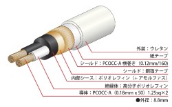 基本構造は2芯パラレルレイアウトで、仕上げはパールホワイトを採用。導体はPCOCC-A、導体径も1.25sqという大容量を有し、導体構造は3層からなる反転同心撚り構造を採用する。シールドも同様にランダムな隙間を排除するために、横巻シールドを採用。ノイズ対策については、4レイヤー・シールディングを新採用し、外来ノイズはもちろん、内部発生ノイズや振動によるスパークノイズまでも高性能にシャットアウトする。