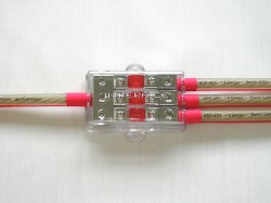 近年、各メーカーから発売される車載用パワーアンプの多くは、電源ターミナル部が4ゲージ仕様になっているが、意外なことに4ゲージIN-4ゲージOUTのヒューズディストリビューションブロックは市場に存在しなかった。UDP-FHMIDI3は、バッテリーからのパワーケーブルを3分配するMIDIヒューズ対応のパワーブロックである。