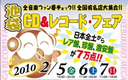 全国の有名レコード店が集合する「池袋CD&レコード・フェア」が、2月5日から開催される。年に数回開催されるこのイベント、2010年の第1回目となる今回は16社が出店。プレミア付きの貴重盤からリーズナブルプライスのバーゲン盤まで、各ジャンルのCDやレコードが多数出品される予定である。音楽ファンはお見逃しのないように!