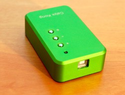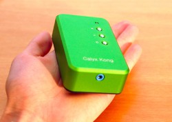 サイズは52W×22H×86Dmmと手のひらに収まる大きさ。外観は削りだしシャーシで、インパクトあるグリーンカラーとなっている。製品名の「KONG」は韓国語で“豆”を意味しており、この外観にちなんで名付けられた。