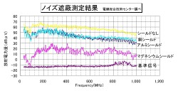 世界初の画期的なマグネシウム薄膜シールドを導入する、特許構造によるマグネシウムシールドにはどのようなメリットがあるのか。その違いは音だけでなく、客観的な測定データからも裏付けられたという。基準信号との幅が狭いほど、優れている(同社LANケーブルによる測定)。測定図にみられるノイズ遮蔽効果の高さは、確実に優れた音へと結びつくものだろう。