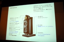 同氏は初めに、同社とB&Wの関わりについて改めて説明。「1993年8月からB&W社の代理店業務を引き継ぎ、同年にノーチラスを発表した。1998年には、今回の新モデルのベースとなるノーチラス800シリーズを発表。これがハイエンドスピーカーのルールブックを塗り替えたと自負している」とし、さらに「2005年にはダイヤモンド・トゥイーターを搭載した800Dシリーズを発表し、これもヒットを記録した。そして今年、800シリーズの最終版とも言える、すべての機種にダイヤモンドトゥイーターを搭載したモデルを登場させる」と述べた。
