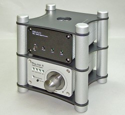 Cuteシリーズアンプにぴったりのミニサイズながら、デザイン、素材ともにハイエンドオーディオ用としても通用する、4mm厚の頑丈なスチールプレートを、19mm径のアルミの削り出しポールでしっかりと支える構造を採用。1台のラックで、最大で3台のCuteシリーズのアンプを収納することが可能となっている。また、複数台を上下に連結しての使用も可能。