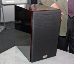 発表会では、ジャージー素材のサランネット装着時、絹サランネット装着時、そしてサランネットを外した状態での比較試聴を行い、「ジャージー素材では抜けが悪く、サランネットを外した状態ではピーク時にややきつく感じるところがある。絹サランネットではピーク時の音を抑えなめらかな音質になっているのがおわかりいただけると思う」とその音質の違いを紹介した。