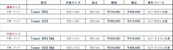 5段仕様のRigid Tower 865と3段仕様の503に関して、価格やサイズは下記の表をご参照いただきたい。