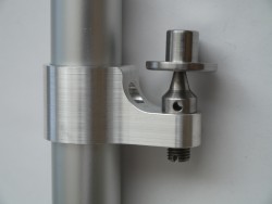 今回の「リジッド・タワー」の開発にあたってポイントとなったのが、チタンパイプ構造のフレーム部に設置された中段の棚板支持部。この部分には剛性が得られる超超ジュラルミンが特殊な接着法で取り付けられている。