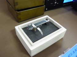 GLANZからはステンレス素材をふんだんに使ったS字型トーンアーム「MH-104S」、ヘッドシェル「MH-4S」などの新製品が紹介された。「MH-104S」はアーム本体の素材であるステンレスの細密加工と切削、研磨に多くの手間がかかった苦心作であると、会場に訪れていた同社の技術者は語る。ダンパー素材の選定と組み合わせにも多くの検証が重ねられたという。「MH-4S」はシェル・プラグ一体削りだし加工となっている。