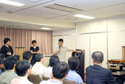 冒頭で「あくまでイベントなので腕組みなんかして聞かないでくださいね。ぼやーっと聞いていていて、体でなんか違うんじゃないかなと感じてもらえればいいんです」と観客に忠告(?)し、会場を和ませる山本氏。スタビライザーはRevolver「Pig2」、fo.Qの「RS-33」、OYAIDEの6月に発売する新製品「STB-MS」といった話題の製品をはじめ、「驚異の70g」と同氏が評したGe3「響」や126,000円の高級モデルISOCLEAN POWER「C-35」も登場し、客席に感想をききながらその効果を説明していった。