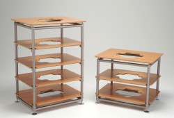 同シリーズは「軽量さと堅牢さ」を極限まで追求した1段式のオーディオラック「リジッド・テーブル」を原型に持ち、音質の高さを維持しつつ3段、5段タイプとすることで、収納力を向上させたモデルとなっている。
