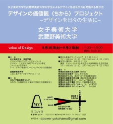 8月28日(土)から9月2日(木)まで、ヨコハマ創造都市センター(YCC)[ 公益財団法人横浜市芸術文化振興財団](横浜銀行跡)」の1階と3階にて、女子美術大学と武蔵野美術大学の学生による様々な作品を展示したデザイン展が行われている。