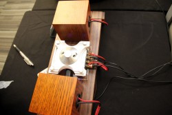 さらに興味深い展示として、光城精工と共同開発した「真空管アンプ用電源ユニット」も展示。電源トランスレス、つまりスイッチング電源で真空管アンプをドライブすることを可能にしたという。トライオードでは「オーディオでもエコの流れは避けられない」と判断。今回の試作品を使うことで、消費電力をおおむね5分の1程度にできるという。