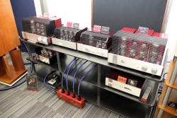 試聴デモの中心は、バンドイコライザーを搭載するなどしたプリアンプ「TRX-1」と、「TRV-88SE」をベースにステレオ化したパワーアンプ「TRX-P6L」。両機でスペンドールの「SP-100R」を鳴らしている。