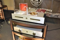 (株)ハイ・ファイ・ジャパンは、同社が取り扱うAccustic ArtsのCDプレーヤー「PLAYER ES」とプリメインアンプ「POWER ES」に、MONITOR AUDIOの「PL-200」を組み合わせてデモを行っている。