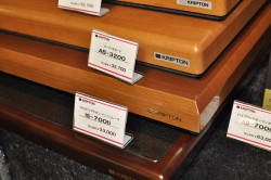 ブースには同社のオーディオ事業10周年記念モデルとなる、キャビネットに漆塗りを施したスピーカーシステム“Vigore”「KX-3UB」も展示されている。価格は735,000円(税込・ペア)。他にもハイカーボンスチールインシュレーター「IS-5」や、バイワイヤリング・アダプター「BA-10 II」、高級オーディオボード「AB-3200」など、数多くの新製品が一堂に並べられている。