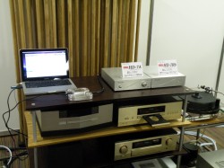 そのほか、USB入力に対応したアコースティックアーツのプレーヤー「PLAYER ES」や、フェーズテックのUSB DAC「HD-7A」なども紹介。USBケーブルによる音の違いを披露したほか、TRMが取り扱うEastern ElectricのUSB DAC「MiniMax DAC」も急遽登場。真空管と半導体の増幅回路をフロントパネルで簡単に選択できるという同製品の特徴を体験できるうれしいハプニングもあった。