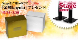 スピーカースタンド「Stage」はすでに予約が開始されており、予約・購入の方から先着150名に、置くだけタイプの小さな吸音材「金襴koyuki(非売品、2011新春だけの限定色)」をその場で1個プレゼントするキャンペーン「スピーカースタンドと一緒に、ルームチューニングの効果を体験しよう」も実施される。サイズは、「Watayuki」の1ブロック分(約10cm)。対象店舗は全国KRYNA製品取扱販売店で、限定数につき、無くなり次第終了となる。