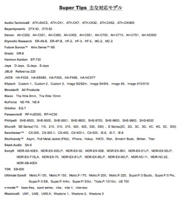 さらに専用アダプターも付属。アダプターを取り付けることで他社のイヤホンにも使用することができる。主な対応モデルは下記の画像を参照されたい。
