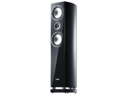 25mmトゥイーター、180mmミッドレンジを1基ずつ、220mmウーファーを2基備える3ウェイ4スピーカー構成のフロア型。周波数帯域は20Hz〜40kHz、インピーダンスは6Ω、定格入力は200W、最大入力は350Wとなる。