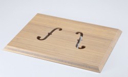 ポリウレタン塗装を施した3層の竹集成材による、f字スリットが印象的なオーディオボード。底面をフラットとして床にしっかりと密着させながらも、斜めに加工されたエッジによって部屋全体に音をひびかせることを可能としている。