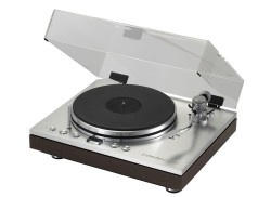 ターンテーブルはアルミ削り出しで、質量5kg。回転数は33 1/3rpmと45rpmに対応している。スピンドルはベアリングボール仕様の大口径テフロン軸受けを採用しており、安定した回転をサポートするという。