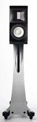 背面には直径70mmのアルミ・バスレフポートを搭載。空気抵抗を最小にし、スムーズな低域再生を可能にしている。スピーカースタンドにはブックシェルフタイプの「Ayra C-1」の専用スタンドが適合する。