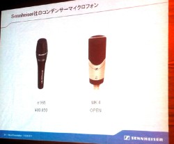 マイク「MKH 461」などのガンマイクや、紅白歌合戦にも多数使われたというワイヤレスマイク「SKM 5200」など、多種多様な製品をラインナップに持っている。