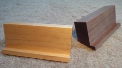 (株)レクストでは、同社製品に使用されている素材である、「ハードメイプル」と「ブラックウォールナット」2種類の高級天然木無垢材からの削り出しで作ったディスプレイスタンドの限定予約販売を開始した。販売価格は1個2,000円(税、送料込、義援金付き)。