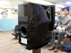 さらに、当日の昼に成田へ着いたばかりだというディナウディオの最新スピーカー「C1 Signature」(関連ニュース)が講演終了ギリギリで会場に到着。一般ユーザーの前で音出しが行われるのは今回が世界初ということもあり、来場者も非常に興味深そうにデモへ聴き入っていた。