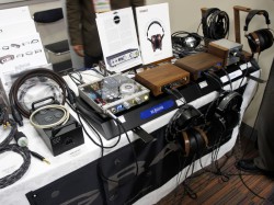 実際に各種製品をヘッドホンで試聴できるようにしており、その試聴用ヘッドホンにはAUDEZ'Eのヘッドホン「LCD-2」を用意。熱心に製品を試聴する来場者の姿も見られた。