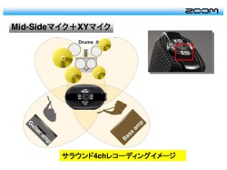 XYマイクは、録音時のL/Rの位相のズレを解決するため、左右のマイクを同一軸上に重ね合わせて配置。これにより、奥行き感を捉え定位に優れた録音を行える。行方氏は「90度のくの字型に向いた擬似的なXYマイクではない。プロは必ず同一軸上の配置を使う」と説明。※当初「本機は内部のXYマイクカプセルを回転させ、ステレオ指広角を標準の90度から120度へ切り替えられる」と記述していましたが、これは誤りでした。同機能は従来機種「H4n」に搭載されているもので、本機は対応していません。訂正してお詫び申し上げます。(7/15)