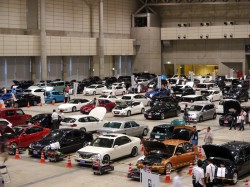 幕張メッセの7、8ホールには、エントリーしたデモカーがずらり。評論家の山之内 正氏らが厳正な審査を行っていた。
