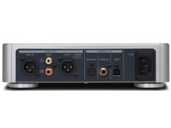 USBのほかに、光/同軸デジタル入力も備える。出力端子はRCAピンジャックとXLRバランスを装備。本体サイズは215W×61H×231Dmm。消費電力は13Wとなる。
