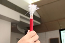 四つ目は「絹」。これまでサランネットに絹を採用するなどしてきた同社だが、今回はケーブルの介在として絹を使っている。絶縁性・弾力性・耐電性が高く、しなやかで強靱、燃えにくく安全性が高いのもポイントだという。