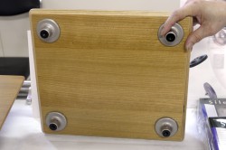 また、10月1日から発売を開始したオーディオボード“Weefolk board”にも注目だ。こちらはシンプルなスパイク脚付きのオーディオボード。オーディオラック“リジッドテーブル”と共通の特殊積層合板チェリー仕上げで、リジッドテーブルの下部やスピーカー間の機器設置に効果的だという。スパイク脚はアルミ製。