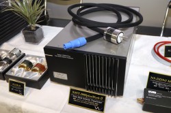 ボルトアンペアは、本年1月に168,000円で発売されたステップアップトランス内蔵電源整合器「GPC-TQ」をフィーチャーしている。また、オーディオ用ではないが、現在飲食店などでの業務用に展開している充電装置も展示。通常のコンセントからの給電のほか、ソーラー充電にも対応している。今後はこれをベースにオーディオ用の電源装置を開発予定とのことで、来年には発表していきたい意向だという。