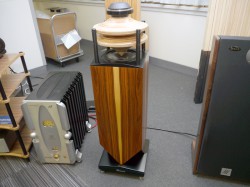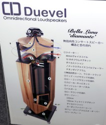 そのほか、独Duevelブランドの無指向性スピーカーも注目を集めていた。こちらは220mmウーファーの上にラミネートウッドの無指向性ホーンを配置。さらにその上に44mmトゥイーターを搭載したもの。放射状に放たれる音の流れを作るホーンの曲率やデュベール独自の2ウェイクロスオーバー技術、ドライバーの素材や出力バランスの吟味など、試作と試聴を繰り返して作り上げた製品だという。価格は1台787,500円(税込)。