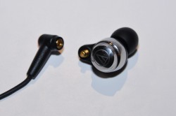 コードは着脱式で、本体付属のケーブルはY型の1.2m。Y型分岐以降プラグ側のケーブルはL/Rを分離した2芯平行線を採用し、電磁誘導によるノイズの発生を減らしながら音質を高めている。被覆素材は手触りもさらっとしているPVCを採用。プラグは金メッキを施したφ3.5mmのL型ステレオミニプラグ。付属のイヤーチップはコンプライのもの(Mサイズ)で、そのほかにS/M/Lのシリコンイヤーピースも用意されている。