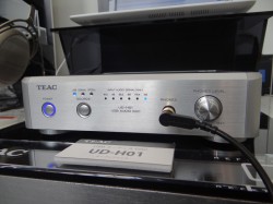 同じく“REFERENCE01シリーズ”からは、ヘッドホンアンプを内蔵するUSBオーディオ用デュアルモノラルD/Aコンバーター「UD-H01」も出展。beyerdynamicのヘッドホン新製品「T70p」や、フラグシップモデルの「T1」を組み合わせたPCオーディオ再生も楽しむことができる。