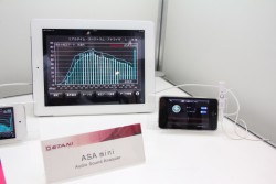 エタニ電機は、オーディオアナライザー「ASA-10mkII」を出展。小型筐体でUSBバスパワーで駆動するモデルで、96kHz/24ビットに対応。スイープ周波数特性やリアルタイムスペクトラムアナライザー、グラフ印刷、タイムアライメント調整機能、インパルス応答収録機能などを備える。