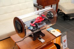 今回の目玉は、円筒部分がスケルトンになっており、内部にモデルカーなどをディスプレイできるという製品。すでに小型の「SK 0815」は58,800円(ケース付き)で販売しているが、これより大きなモデルについても、受注販売を行うという。