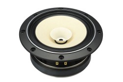 コルゲーション軽量布エッジESコーンを採用し、微小入力から高入力時までの応答特性向上を実現。厚みある中低域、明瞭でフラットバランスな中高域再生が特徴という。コーン紙とダンパー、ボイスコイルの接着を同一箇所で行う3点接着方式を採用。ダンパーをポケットネックダンパーとすることで、ボイスコイルに中継線を使用しながらも3点接着を実現し、入力端子までの伝送ロスも軽減したとのことだ。