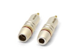 KRYNAのRCAプラグは銅製のスリーブ(カバー)で外部から受けるノイズや磁界による悪影響を遮断。また、スリーブ部分を回し端子を外側から締め付け確実に端子を固定するチャック方式を採用。サイズはφ9mmホールを持つブラックのロングタイプ(Inca7に採用)と、φ7mm,9mmホールを持つパーライズドシルバーのショートタイプ(Inca5,3,Dica01に採用)の3種類が揃えられている。