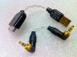 Cyper Labs社のiPhone/iPod用ポータブルDD/DAコンバーター「AlgoRhythm Solo」とポータブルアンプ(のRXampMK2やThe Continentalなど)をつないで使用するためのケーブル。