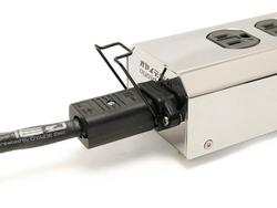 使用に際しては、機器のインレットのネジを外し、付属するL型プレートを取り付け、本製品をはめ込む。電源ケーブルを挿し込み、ロックすることで電源ケーブルをホールドする。