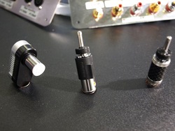 FURUTECHブースに展示され注目を集めていたのが、先に日本でも発表されたバナナプラグの新製品「FT-212(G/R)」とYラグの新製品「FT-211(G/R)」だ。
