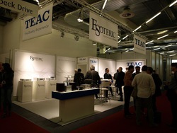 ミュンヘンで開催されている「HighEnd 2012」。ティアック/エソテリックのブースでは、日本でもお馴染みのエソテリックのハイエンド機器「K-03」「K-01」「D-07X」に加え、ティアックブランドのUSB-DAC「UD-01」、iPodトランスポート「DS-H01」、プリメインアンプ「A-H01」などが展示されていた。