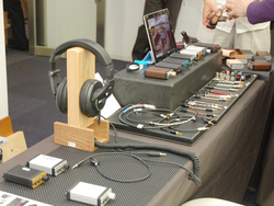 アコースティックフィールドは、ハンドメイドオーディオで人気を集めるMH audioブランドの製品を出展。ヘッドホンアンプやヘッドホンスタンド、ケーブルアクセサリーに至るまで現行製品が全て展示され、全モデルの試聴が可能となっていた。