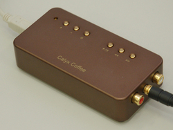 アレグロは、同社が取り扱う韓Calyx社のヘッドホンアンプ搭載USB-DAC「Calyx Coffee」を出展。PC内の音源ソースを使用し、同モデルの試聴デモを実施していた。