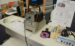 テイクティは、ポータブルトゥイーター「TAKET-BPP」の試聴デモを実施。二股のコネクタとセットになっており、ポータブルプレーヤーに装着したコネクタに本機とヘッドホンを接続して使用する。ヘッドホン「H2+」も展示していた。
